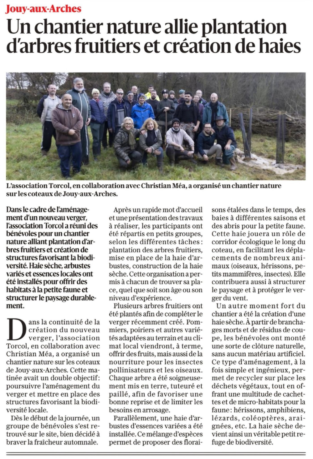 Dans la continuité de la création du nouveau verger, en collaboration avec M. Christian Mea, Torcol a organisé un chantier nature le samedi 29 novembre 2025 sur les coteaux de Jouy-aux-Arches.