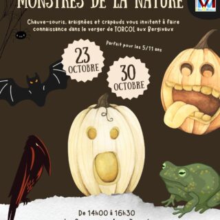 Chauves-souris, araignées et crapauds vous invitent à faire connaissance dans le verger de Torcol aux BergivauxAnimation gratuite n’hésitez pas à inscrire vos enfants, parfait de 5 à 11 ans et il y a encore...